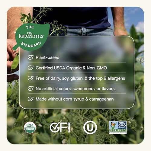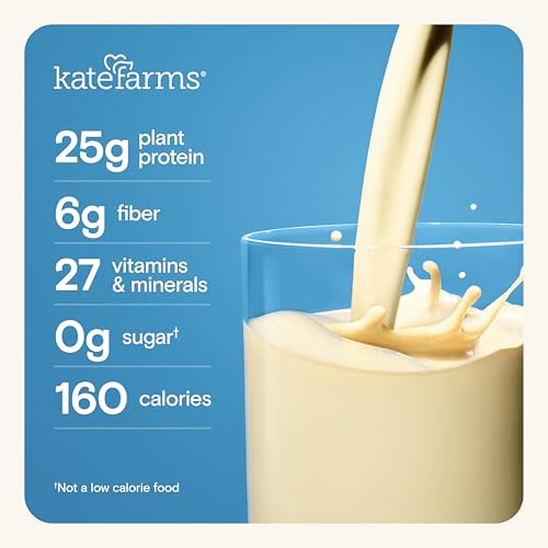 Specification: KATE FARMS Organic High Protein Strawberry Nutrition Shake, 25g Protein, 6g Fiber, 27 Vitamins and Minerals, 0g Sugar, Protein Drink, 11 oz (6 Pack)