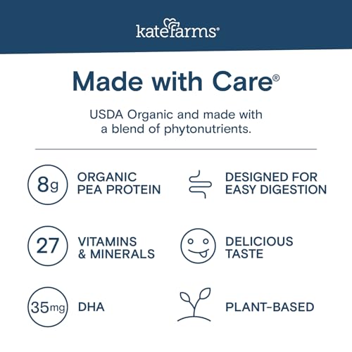 Specification: KATE FARMS Organic Kids Nutrition Vanilla Shake, 8g Protein, 27 Vitamins and Minerals, Meal Replacement, Gluten Free, Non-GMO, 8.45 oz (12 Pack)