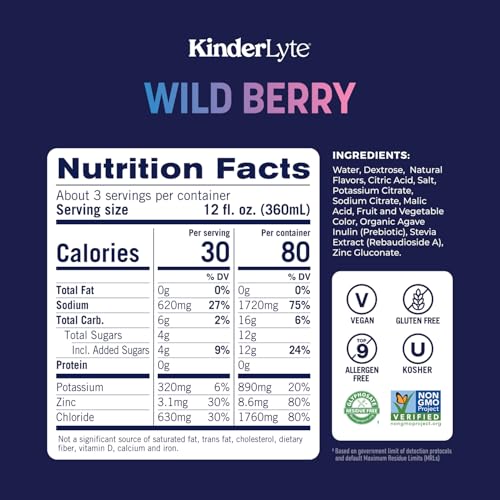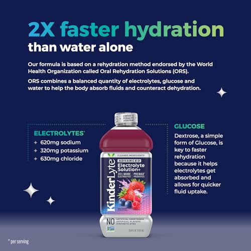 Specification: KinderLyte Advanced Electrolyte Solution for Kids and Adults – Hydration Drink (Wild Berry, 6 Count), With PreMax Prebiotics, No Artificial Sweeteners or Flavors, No Synthetic Dyes