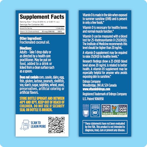 Specification: Ddrops Adults 1000IU 365 Drops – Liquid Vitamin D3 Supplement, Supporting Strong Bones & Immune System