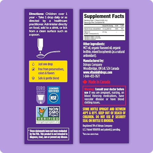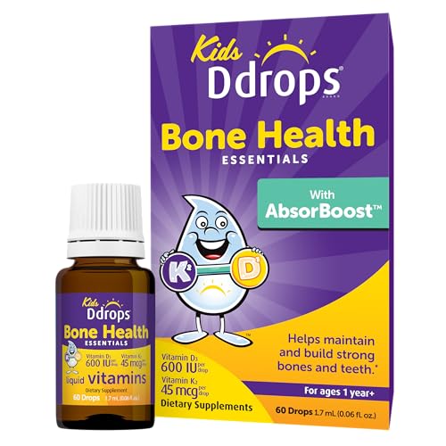 Specification: Ddrops Kids Bone Health 600 IU Vitamin D3 + 45 mcg K2-60 Drops – Helps Maintain and Build Strong Bones and Teeth. No Artificial Preservatives, No Sugar, Non-GMO, Allergy-Friendly