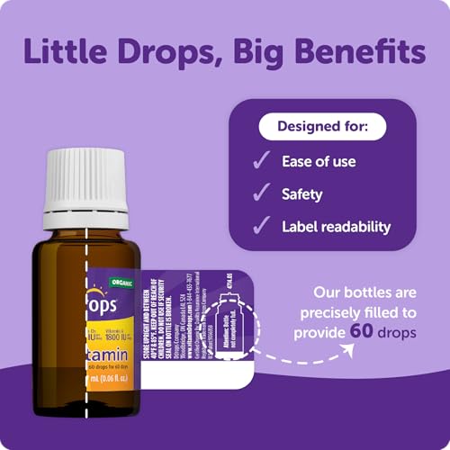 Specification: Ddrops® Kids Organic Liquid Vitamins – Daily Vitamins A&D Drops for Kids, 60 Drops. Supports Eye Health, Bone Development and Immune Function. Certified Organic, Non-GMOs, Allergy-Friendly