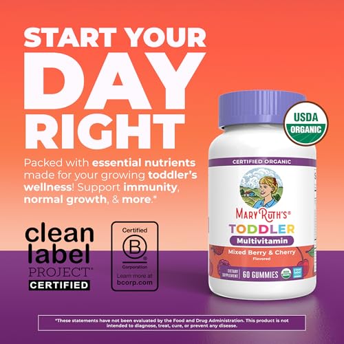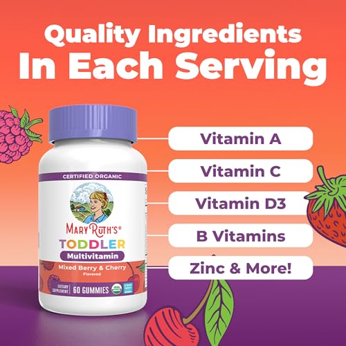 Specification: MARYRUTH’S Organic Toddler Multivitamin Gummies | Ages 4+ | Vitamin A, C, D, E, B6, B12, Biotin, Iodine, Zinc | Immunity | Bone & Teeth Health | Skin & Vision Support | Vegan | Gluten Free | 60 Count