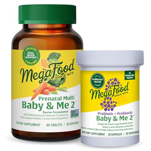 Specification: MegaFood Baby & Me 2 Bundle Pack – Prenatal Vitamin & Minerals (30 Servings) with Prenatal Probiotic & Prebiotic (30 Servings) – Women’s Supplement for Pregnancy