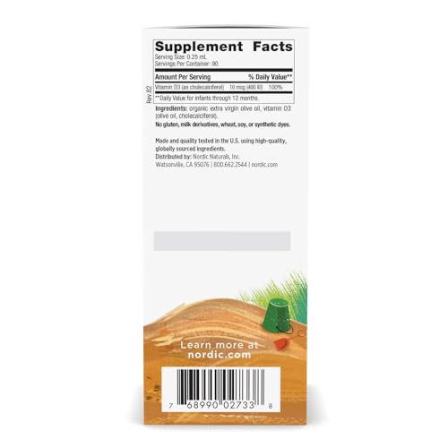 Specification: Nordic Naturals Baby’s Vitamin D3, Unflavored – 0.76 oz – 400 IU Vitamin D3 – Healthy Bones, Immune System Support, Normal Sleep Rhythms – Non-GMO, Certified Vegetarian – 90 Servings