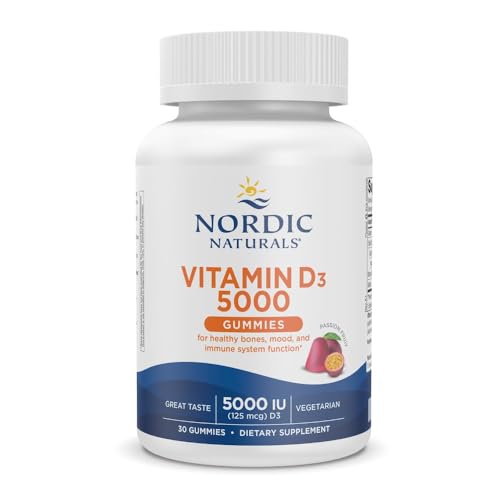 Nordic Naturals Vitamin D3 5000 Gummies, Passion Fruit – 30 Gummies – Support for Healthy Bones, Mood, & Immune System – Vegetarian – Non-GMO – 30 Servings