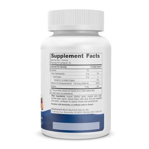 Specification: Nordic Naturals Vitamin D3 5000 Gummies, Passion Fruit – 30 Gummies – Support for Healthy Bones, Mood, & Immune System – Vegetarian – Non-GMO – 30 Servings