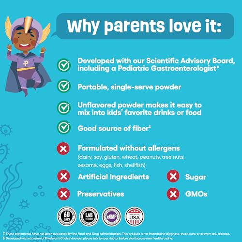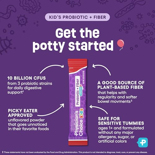 Specification: Physician’s Choice Kids Probiotic + Prebiotic Fiber Packets (Ages 1+) – Supports Regularity, Occasional Constipation & A Healthy Digestive System – No Allergens or Preservatives – Unflavored – 24 Pack