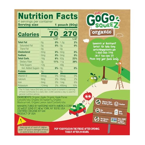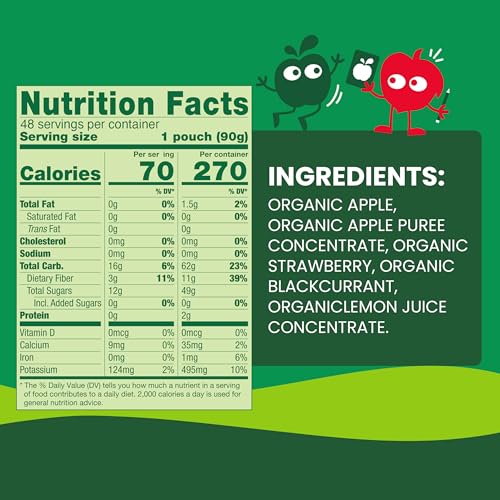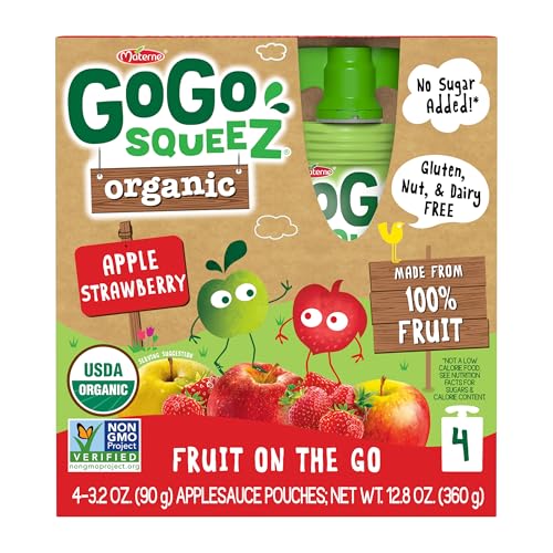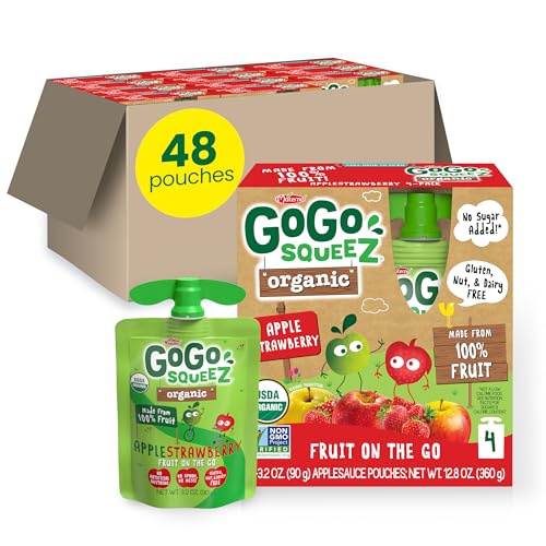Specification: GoGo squeeZ No Sugar Added Organic Applesauce and Fruit Puree Apple Strawberry, 3.2 oz Pouches (Pack of 48), Fruit Snacks for Kids, Gluten Free, Nut Free, Recloseable Cap, BPA Free