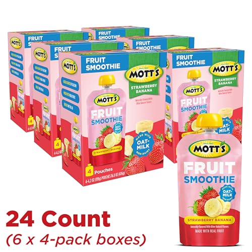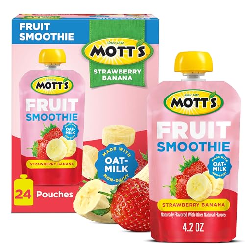 Specification: Mott’s Fruit Smoothies Strawberry Banana, 4.2 oz Clear Pouches, 24 Count (6 Packs of 4), Non-dairy, Made With Oatmilk, Made With Real Fruit, Good Source of Calcium, On-the-Go