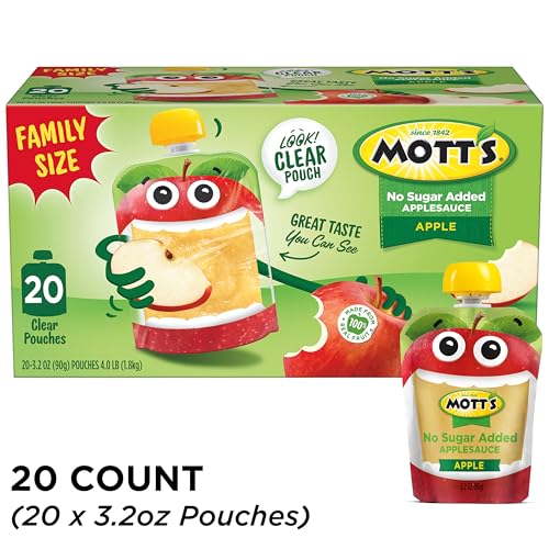Specification: Mott’s No Sugar Added Applesauce, Made from Real Fruit, No Artificial Flavors, 3.2 Oz Clear Pouches, 20 Pack