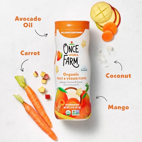 Specification: Once Upon A Farm Mango, Coconut & Carrot Puffed Sorghum Snack, Fruit & Veggie Puffs, Non GMO, 1.5 Ounces (Pack Of 6)