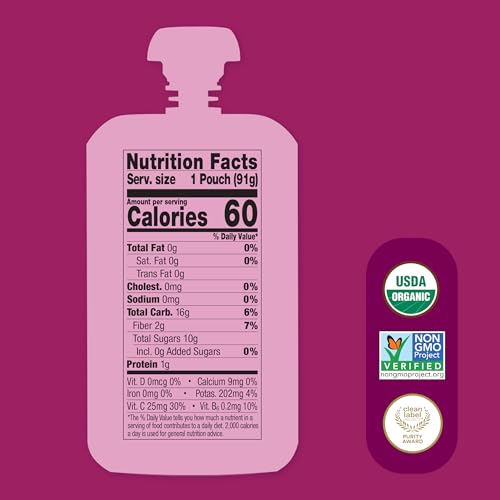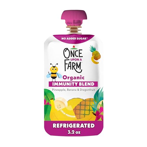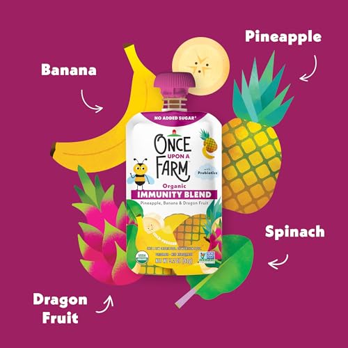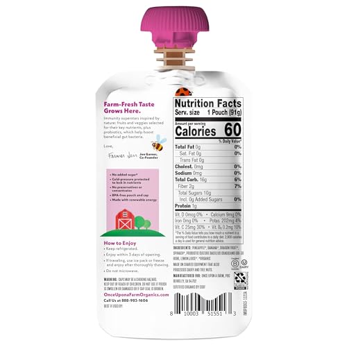 Specification: Once Upon a Farm Organic Pineapple Banana Dragon Fruit Immunity Blend Kids Snack, 3.2oz Pouch