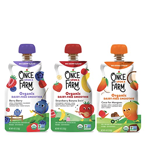 Specification: Once Upon a Farm | Organic Super Smoothie | Berry, Strawberry Banana, Mango | Cold-Pressure Protected | No Sugar Added | Dairy-Free Plant Based | Variety Pack of 24