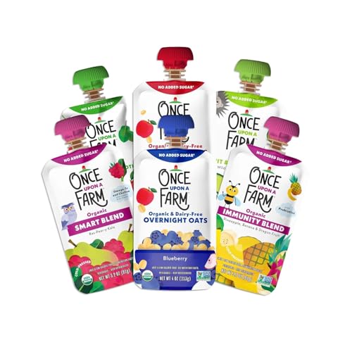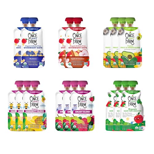 Specification: Once Upon a Farm Pouches, All Day Snacks Variety Pack, Blueberry, Apple, Pineapple, Raspberry, Avocado, USDA Certified Organic, Non-GMO, Cold-Pressure Protected, No Sugar Added, Variety Pack of 16