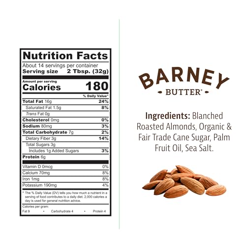 Specification: Barney Butter Almond Butter, Crunchy, 16 Ounce Jar, Skin-Free Almonds, No Stir, Non-GMO, Gluten Free, Keto, Paleo, Vegan