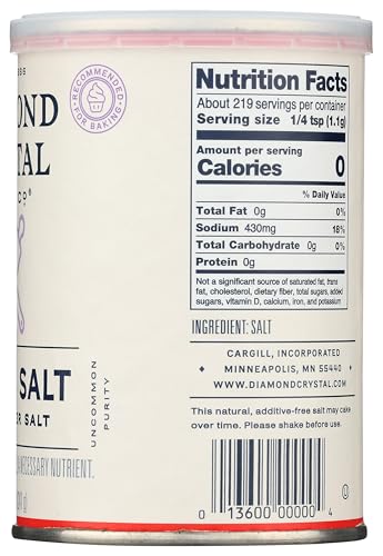 Specification: Diamond Crystal Baking Salt, Fine Kosher Salt 8.5oz