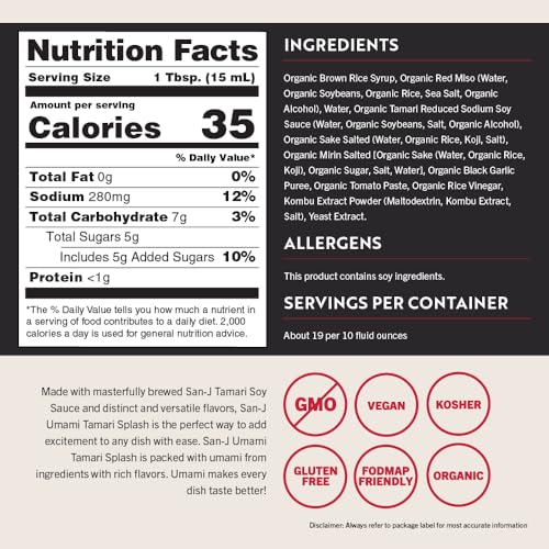 Specification: San-J – Richly Flavored Organic Umami Tamari Splash – Specially Brewed – 10 oz. Bottle