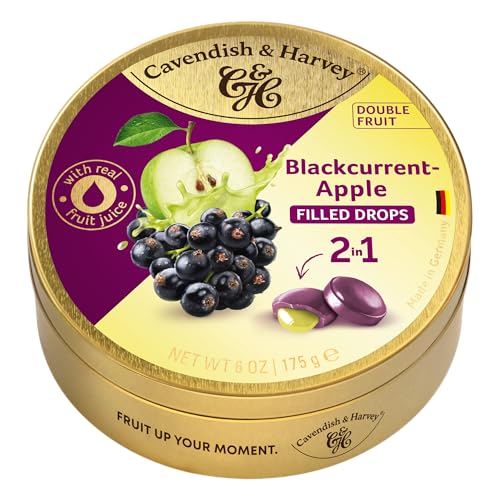 Specification: Cavendish & Harvey | Double Fruit Drops – Blackcurrant with Apple Filling | 175g 6 ounce Tin