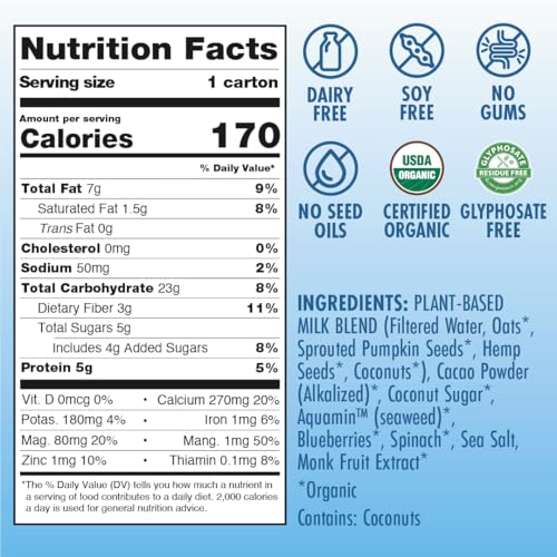 Specification: Chocolate Kiki Milk, Organic, Plant Based, Gum Free, GMO Free, Dairy Free, Soy Free, Gluten Free, Glyphosate Free (8 oz • Pack of 12)
