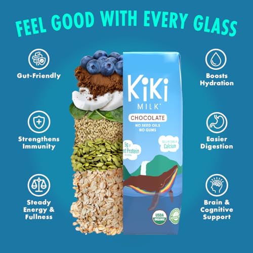 Chocolate Kiki Milk, Organic, Plant Based, Gum Free, GMO Free, Dairy Free, Soy Free, Gluten Free, Glyphosate Free (8 oz • Pack of 12)