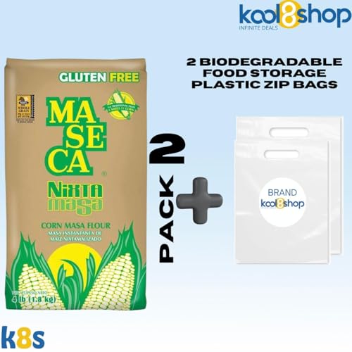 Specification: Maseca Nixtamasa Instant Corn Masa Flour Gluten Free Kosher 4 lbs Bag 2 Pack + 2 Storage Reusable Bags by KOOL8SHOP Infinite Deals