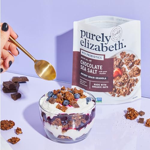 At Purely Elizabeth, we’ve perfected the art of producing nourishing, nutrient-dense snacks that you can’t help but savor. Using a mix of oats, chia seeds, organic coconut oil, and unrefined coconut sugar, we’ve created nutritious and undeniably delicious granola clusters packed with chocolate flavor, fiber, and protein. Carefully baked in small batches, our gluten-free granola is a wholesome snack ready to be eaten in a variety of ways: enjoy with milk or yogurt, add to ice cream, pair with fruit, or sample straight from the bag.