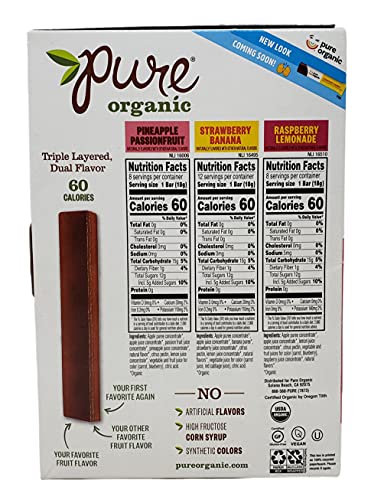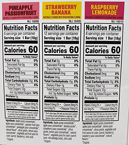 Specification: CC Goods Pure Organic Layered Fruit Bars – Pineapple Passion Fruit, Strawberry Banana, and Raspberry Lemonade – 28 Fruit Bars Per Box – Choose a 56 Pack or 84 Pack (56)