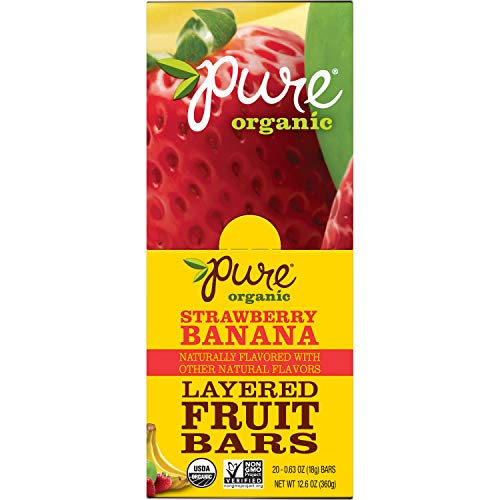 Pure Organic, Layered Fruit Bars, Strawberry Banana, Gluten Free and Vegan Fruit Snacks, 12.6oz Box (20 Count)