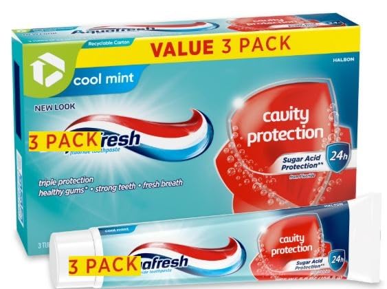 Specification: Cavity Aqua-Fresh Protection Fluoride Toothpaste for Healthy Gums, Strong Teeth, and Fresh Breath, Cool Mint, 5.6 Oz (3 Pack)