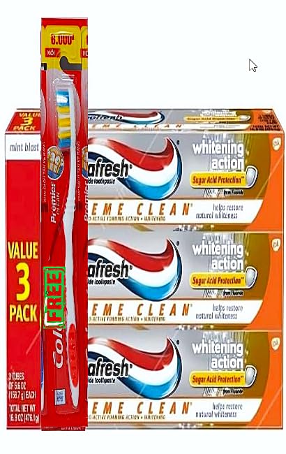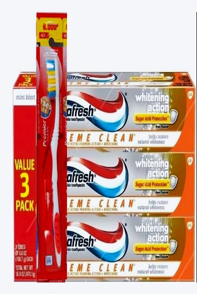 Specification: (Pack of 3) Extreme Aquafresh Clean Whitening Action Fluoride Toothpaste, Mint Blast, 5.6 oz per Tube + Free Premium Toothbrush