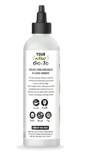 Our 100% Pure Avocado Oil is a game changer to your everyday cooking routine. This all-purpose oil has a smooth, neutral taste that puts your food’s flavor center stage. With its high smoke point and good fats from avocados, this versatile avocado oil is perfect for sauteing, grilling, roasting, baking, frying, and more.