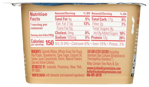 Specification: Icelandic Provisions, Yogurt Skyr Oat Strawberry, 5 Ounce