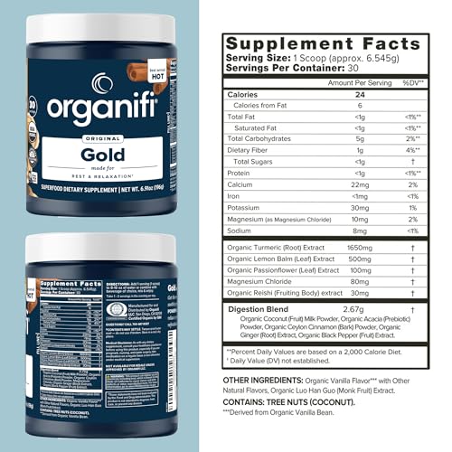 Specification: Organifi: Gold – Superfood Supplement Powder – 30 Servings – Stress Support, Better Rest, Relaxation and Promotes Restful Sleep – Turmeric and Reishi Infused