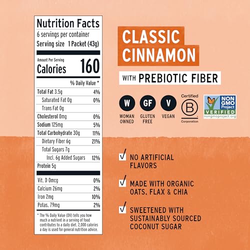 Specification: Purely Elizabeth Classic Cinnamon Superfood Oatmeal, with Prebiotic Fiber, Gluten Free & Non-GMO, 9.12 Oz (Pack of 6) (6 Pack, Classic Cinnamon)