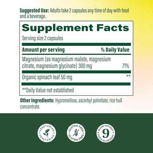 Specification: MegaFood Magnesium Glycinate, Citrate & Malate 300mg Supplement – Highly Absorbable Blend to Support Heart, Nerve Health & Relaxation, Triple Magnesium Complex Supplement, 120 Capsules (60 Servings)