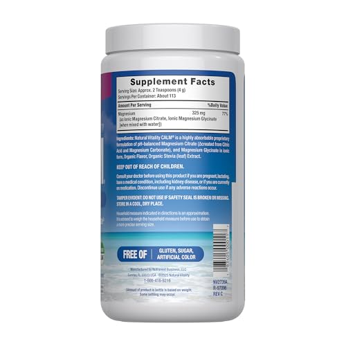 Specification: Natural Vitality Calm Magnesium 16oz Powder | Raspberry Lemon Flavored Supplement | Non-GMO, Vegan & Gluten Free Formula