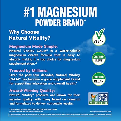 Specification: Natural Vitality Calm, Magnesium Citrate Supplement, Anti-Stress Drink Mix Powder – Gluten Free, Vegan, & Non-GMO, Raspberry Lemon, 0.12 oz, 30 Packets