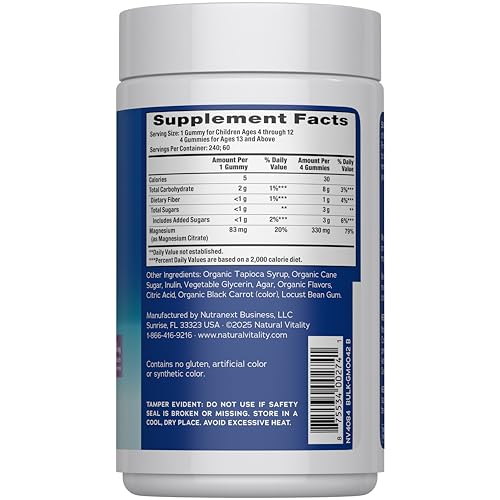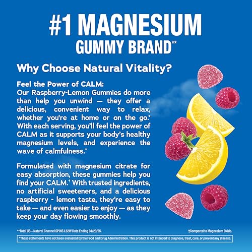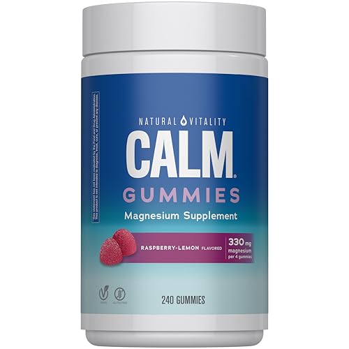 Specification: Natural Vitality Calm Magnesium Gummies | 330mg Per Serving | Raspberry Lemon Flavored Supplement | Gluten-Free & Vegan | 240 Count