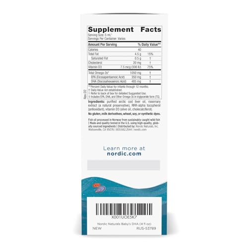 Specification: Nordic Naturals Baby’s DHA, Unflavored – 4 oz – 1050 mg Omega-3 + 300 IU Vitamin D3 – Supports Brain, Vision & Nervous System Development in Babies – Non-GMO – Servings May Vary