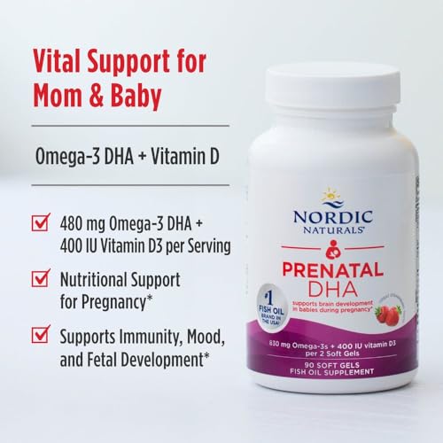 Nordic Naturals Prenatal DHA, Strawberry – 120 Soft Gels – 830 mg Omega-3 + 400 IU Vitamin D3 – Supports Brain Development in Babies During Pregnancy & Lactation – Non-GMO – 60 Servings