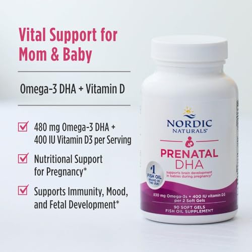 Specification: Nordic Naturals Prenatal DHA, Unflavored – 180 Soft Gels – 830 mg Omega-3 + 400 IU Vitamin D3 – Supports Brain Development in Babies During Pregnancy & Lactation – Non-GMO – 90 Servings