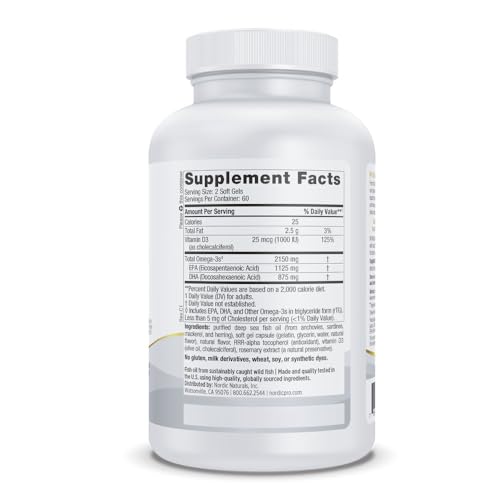 Specification: Nordic Naturals ProOmega 2000-D, Lemon Flavor – 120 Soft Gels – 2150 mg Omega-3 + 1000 IU D3 – Ultra High-Potency Fish Oil – EPA & DHA – Brain, Heart, & Immune Health – Non-GMO – 60 Servings