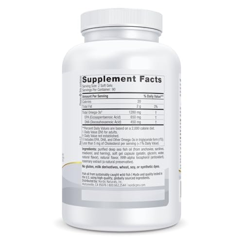 Specification: Nordic Naturals ProOmega, Lemon Flavor – 180 Soft Gels – 1280 mg Omega-3 – High-Potency Fish Oil with EPA & DHA – Promotes Brain, Eye, Heart, & Immune Health – Non-GMO – 90 Servings