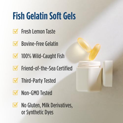 Nordic Naturals Ultimate Omega in Fish Gelatin, Lemon Flavor – 60 Soft Gels – 1280 mg Omega-3 – High-Potency Fish Oil Supplement – EPA & DHA – Promotes Brain & Heart Health – Non-GMO – 30 Servings