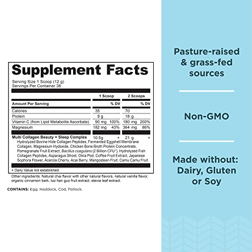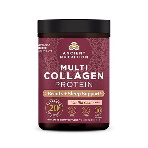 Specification: Ancient Nutrition Collagen Powder Protein, Multi Collagen Protein Beauty + Sleep with Vitamin C, Vanilla Chai, Hydrolyzed Collagen Peptides Supports Skin and Nails, Sleep, 16.1oz
