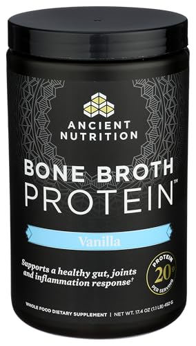 Specification: Ancient Nutrition Grass Fed, Cage Free, Bone Broth Protein Powder, 20g Protein, Hydrolyzed Collagen Peptides, Keto & Paleo Friendly, Supports Joint, Gut Health, Vanilla, 20 Servings