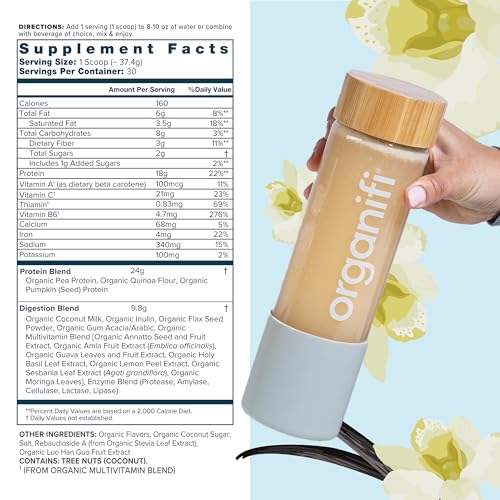Specification: Organifi Complete Protein Vanilla Flavor – Organic Vegan Plant Based Protein Powder with Digestive Enzymes – 30 Day Supply – No Soy, Dairy, or Gluten