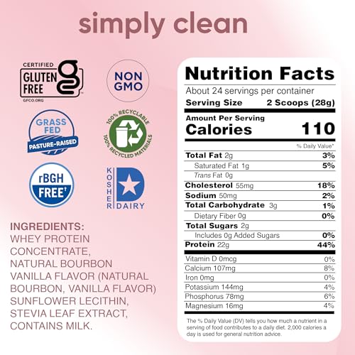 simply tera’s Pure Whey Protein Powder – Grass Fed Vanilla Whey Protein Powder, Clean, Made Without Artificial Sweeteners, Non-GMO, Kosher, rBGH-Free, Soy-Free – 24 Oz
