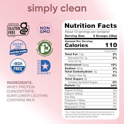 Specification: simply tera’s Pure Whey Protein Powder – Grass Fed Whey Protein Powder, Clean & Natural, Unflavored, Non-GMO, Kosher, Unsweetened – 12 Oz